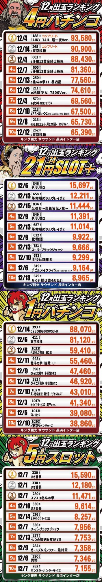 - 4円パチンコ:320台 1.12円パチンコ:214台 21.74円スロット:420台 5.6円スロット:80台