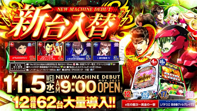 - [4]パチ:468台 [1]パチ:252台 [1000円/46枚]スロ:483台 [5]スロ:34台