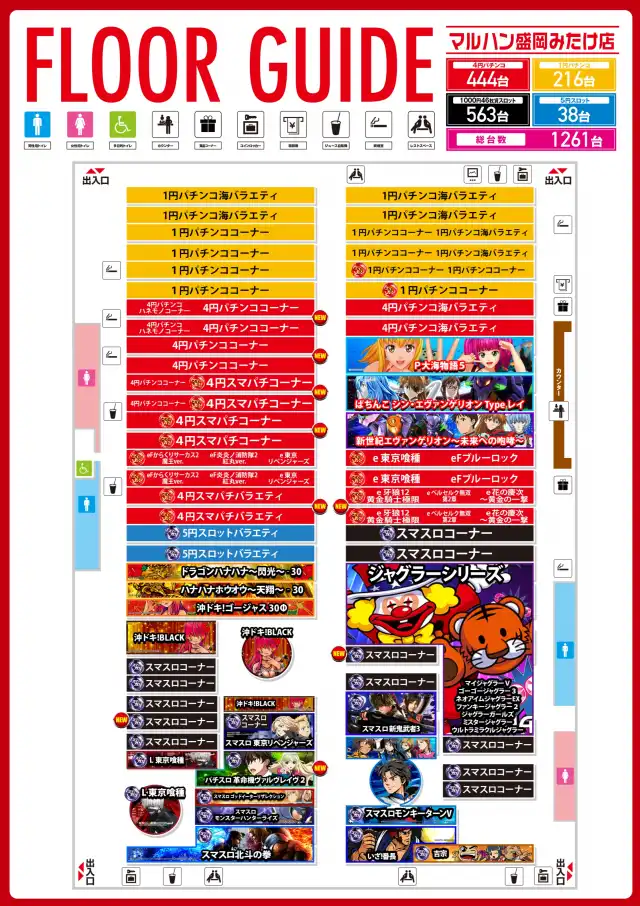 - パチンコ:[1000円/250玉] [1000円/1000玉] パチスロ:[1000円/46枚] [1000円/200枚]