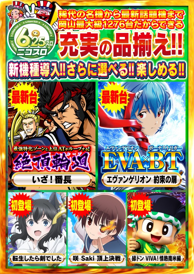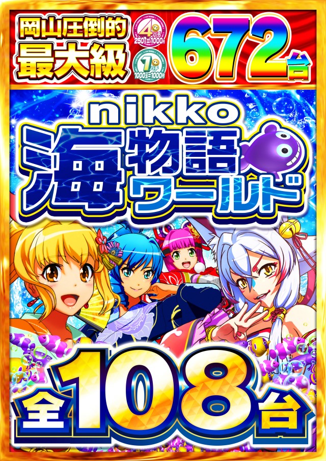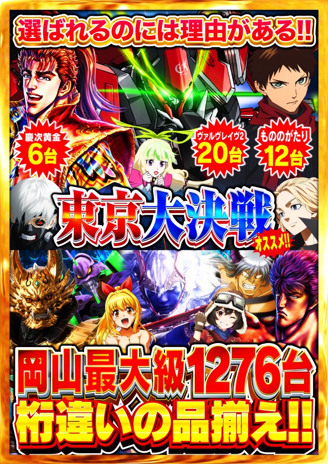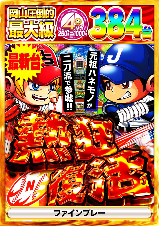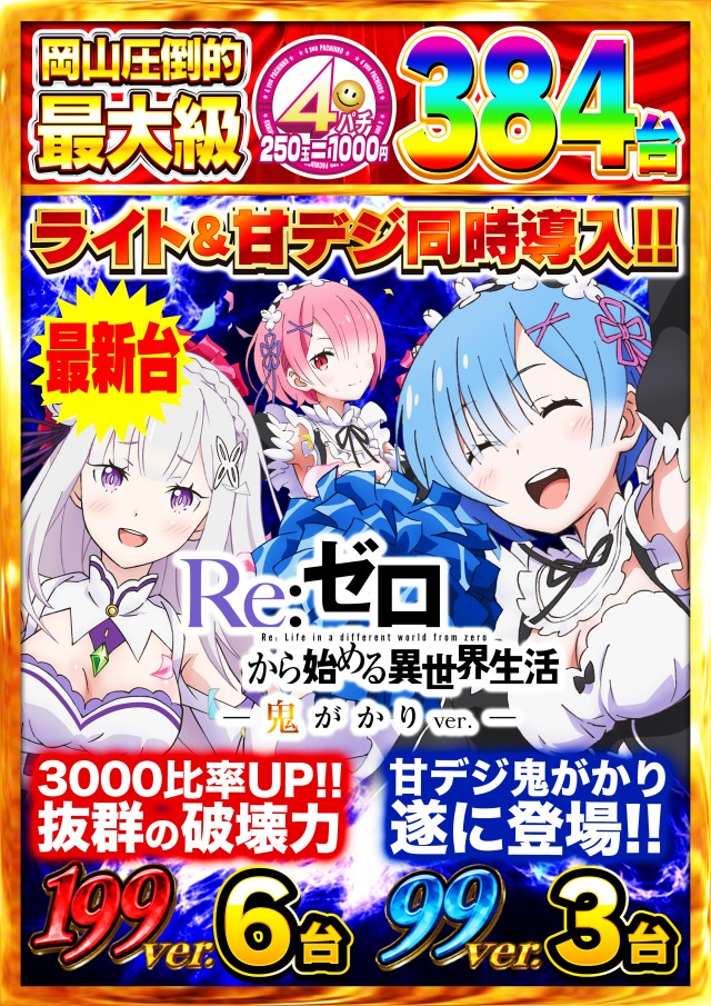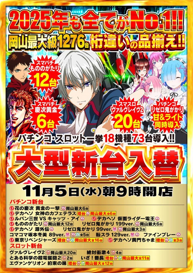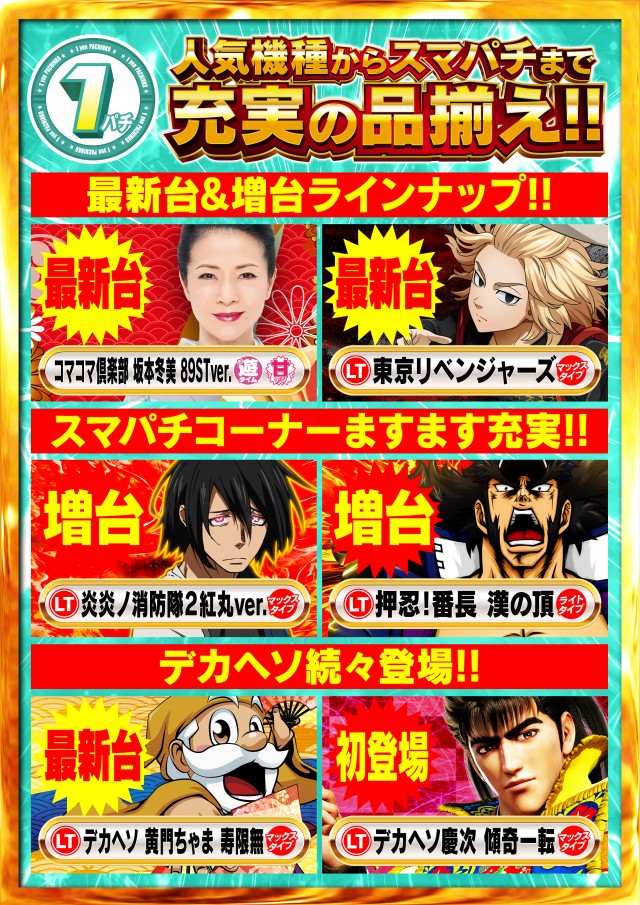 - 4パチ:384台 1パチ:288台 21.73スロ:524台 6.25スロ:76台