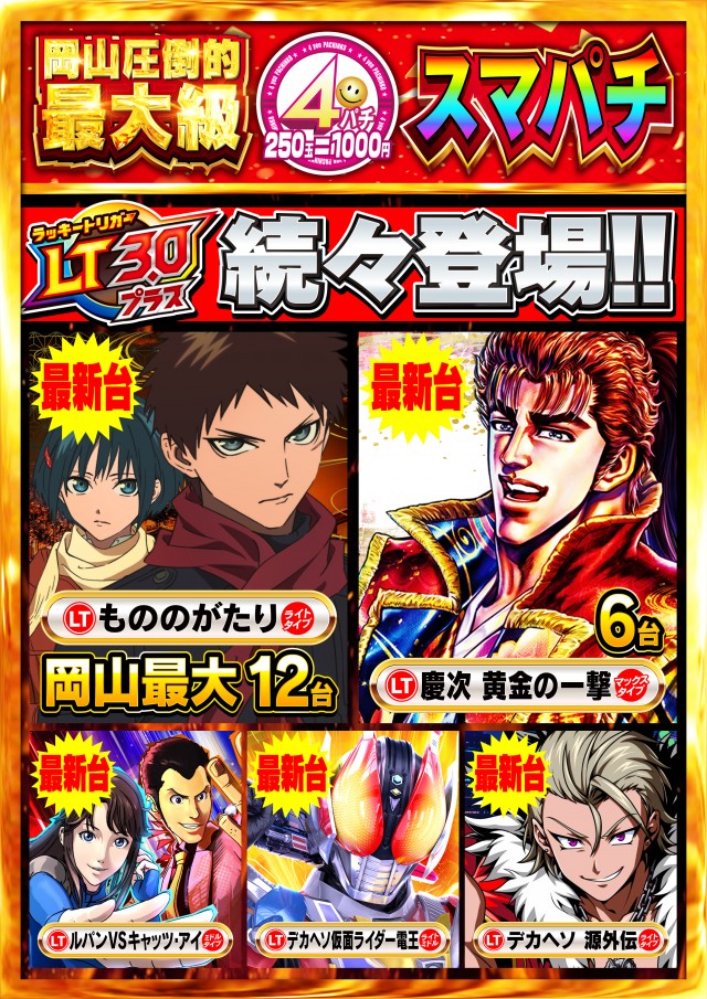 - ■岡山最大級ダントツ‼1276台 ■岡山初!!セルフカウンター 導入! ■脱臭ルーム2機完備『消臭&除菌』でスッキリ! ■喫煙専用レスト完備(電子タバコ専用ルームもあり) ■超高速Wi-Fi完備! ■飲食コーナー完備