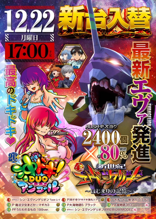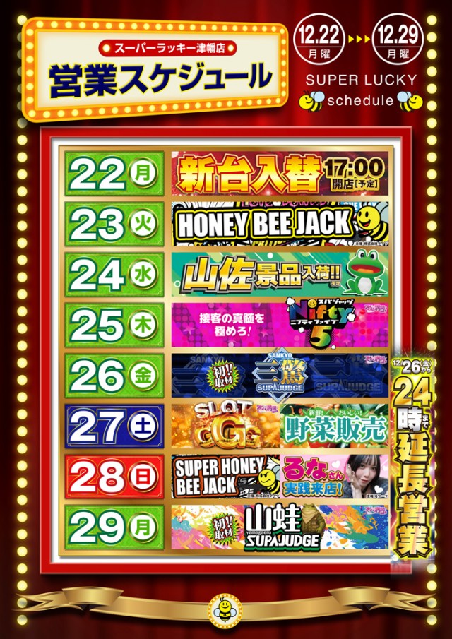 - 朝9時30分より抽選を開始致します。※新台入替17時開店は16時30分より抽選を開始致します。