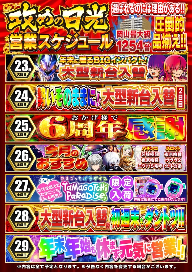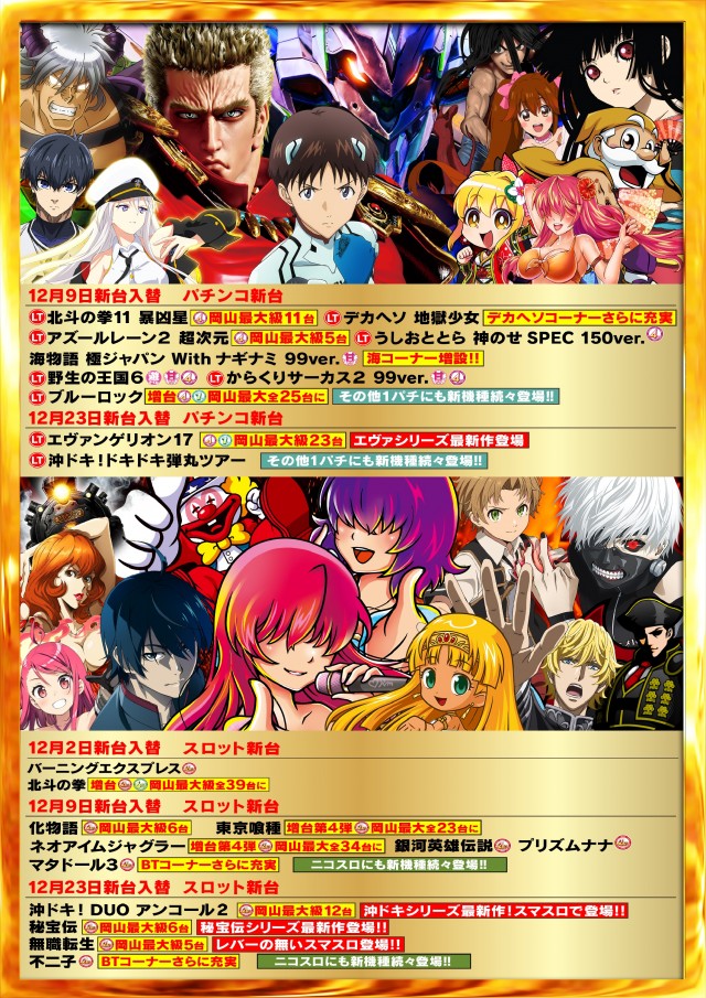 - ■「広々とした楽々台間スペース」 ■全館分煙「店内4隅へ超豪華‼VIP喫煙ルーム完備」 ■「完全除菌・消臭ルーム」 ■「休憩ルーム」コミック5000冊×全席USBポート完備 ■「マッサージコーナー」 ■「女性専用パウダールーム」 ■「喫茶コーナー」 ■「パチンコ&スロット」全台各台計数機設置