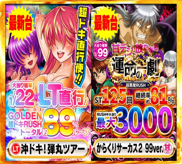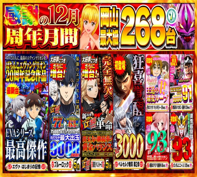- [4]パチ:360台 [1]パチ:268台 [1000円/46枚]スロ:501台 [1,000円/160枚]スロ:125台