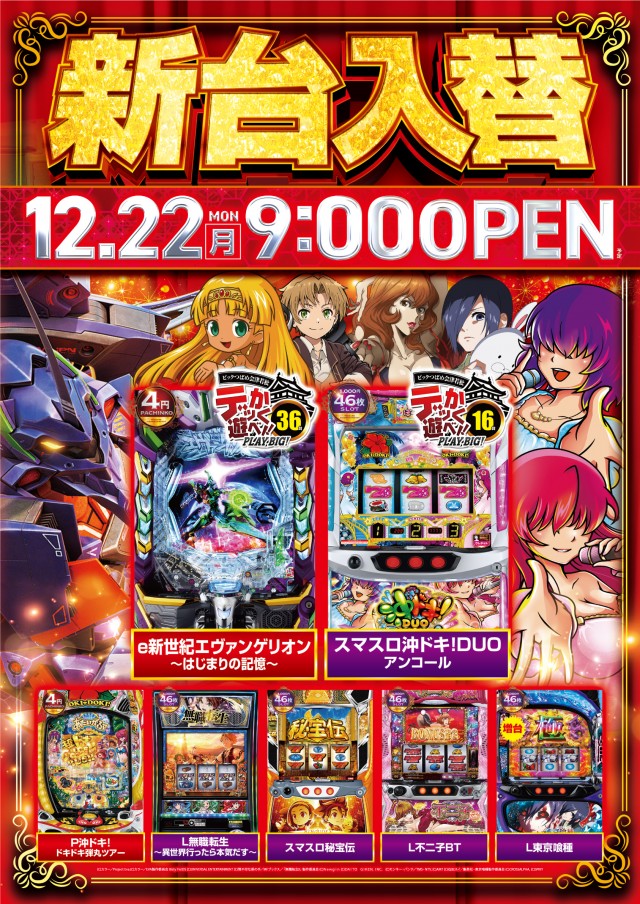 - [4]パチ:281台 [200円/180玉]パチ:288台 [0.222]パチ:36台 [1000円/46枚]スロ:411台 [1000円/450枚]スロ:48台 [1000円/180枚]スロ:44台