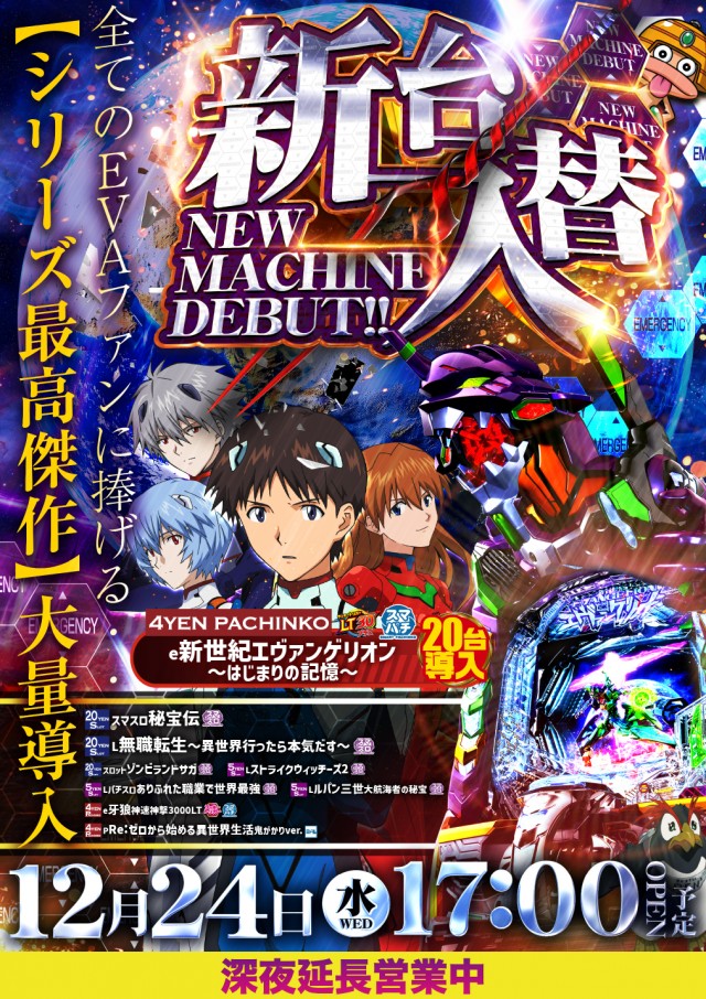 - 2019年12月28日グランドオープン!! お好きな台がきっと見つかる!! 居心地がいい空間をご提供!!