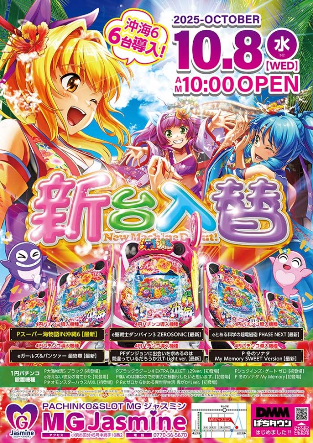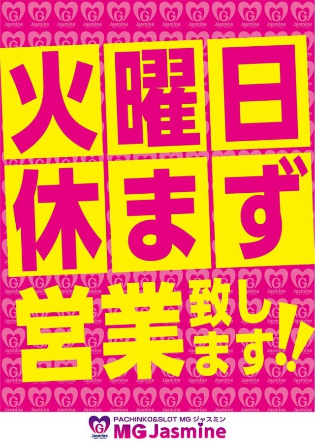 - 2025年8月で、MG♥jasmineは皆様のおかげをもちまして10周年を迎えさせていただきます! 今後も地域の憩いの場として精進させていただきますのでどうぞご愛顧賜りますようお願い致します。