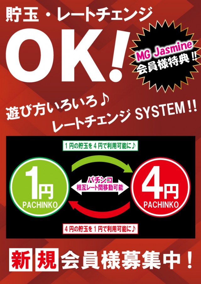 - 2025年8月で、MG♥jasmineは皆様のおかげをもちまして10周年を迎えさせていただきます! 今後も地域の憩いの場として精進させていただきますのでどうぞご愛顧賜りますようお願い致します。