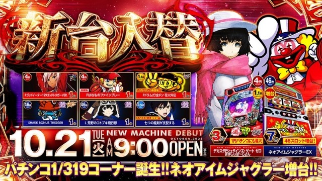 - [0.2]パチ:40台 [4]パチ:240台 [1.1]パチ:200台 [1000円/46枚]スロ:220台 [5.556]スロ:100台