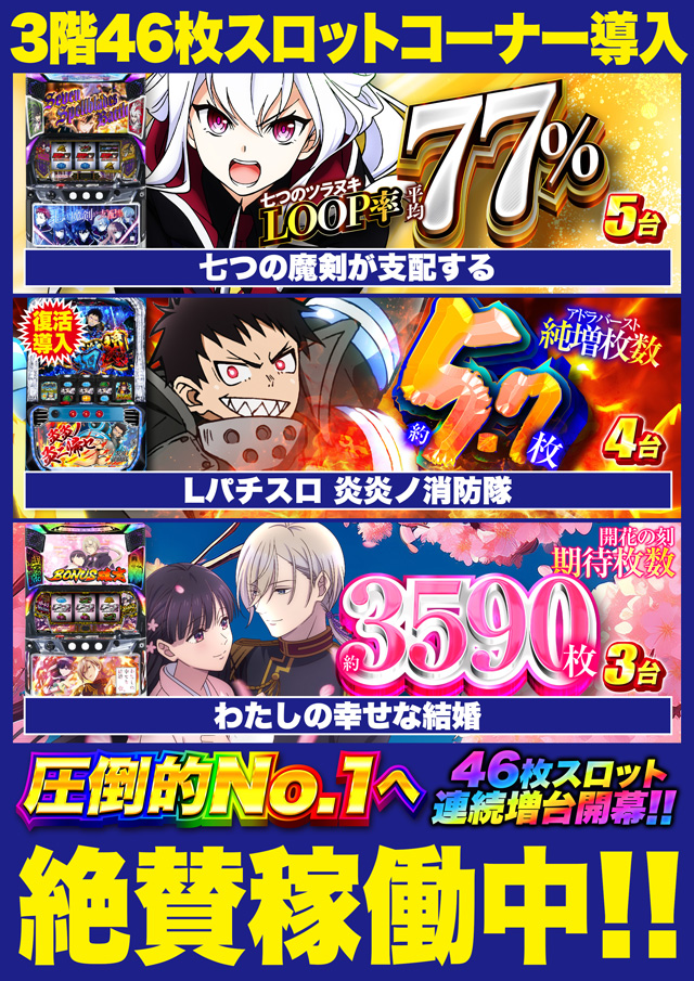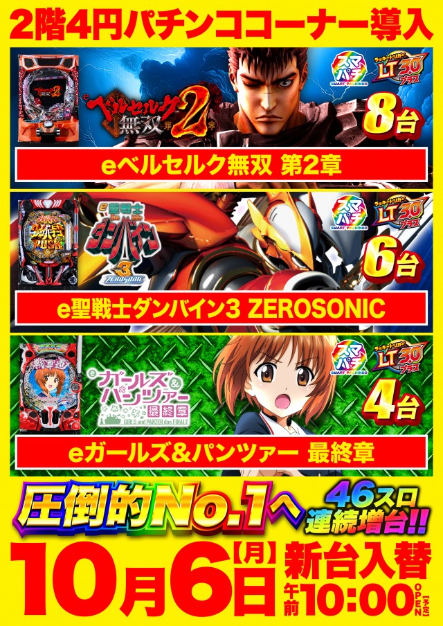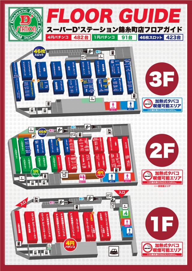 - [4]パチ:482台 [1]パチ:91台 [1000円/46枚]スロ:427台