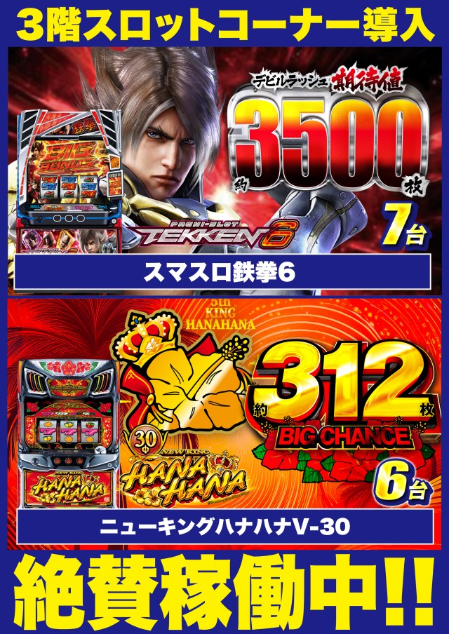 - [4]パチ:458台 [1]パチ:114台 [1000円/46枚]スロ:426台