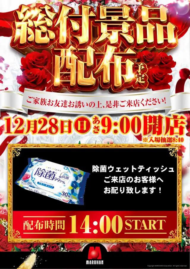 - 8時40分入場抽選→8時50分再整列→9時入場 ※開店時間が異なる場合は別途お知らせ致します。