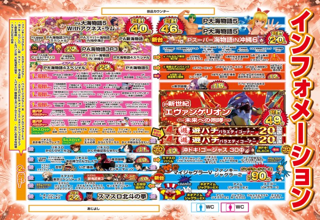 - [4]パチ:236台 [1]パチ:240台 [1000円/46枚]スロ:216台 [5]スロ:36台 [2]スロ:16台