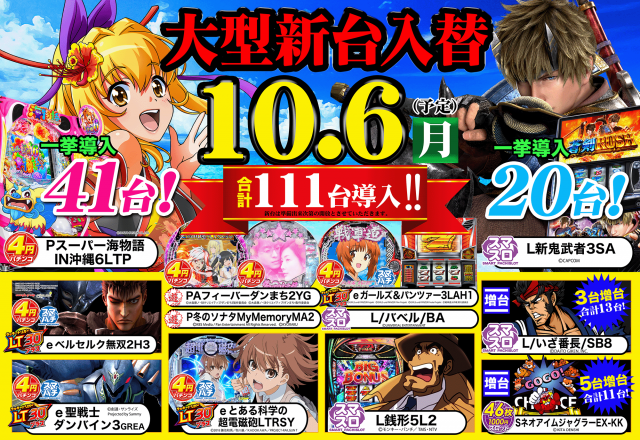 - [4]パチ:502台 [1]パチ:125台 [1000円/46枚]スロ:567台