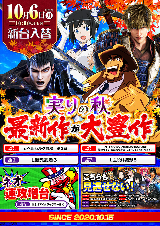 - [4]パチ:57台 [1]パチ:63台 [1000円/46枚]スロ:120台 [1000円/178枚]スロ:13台