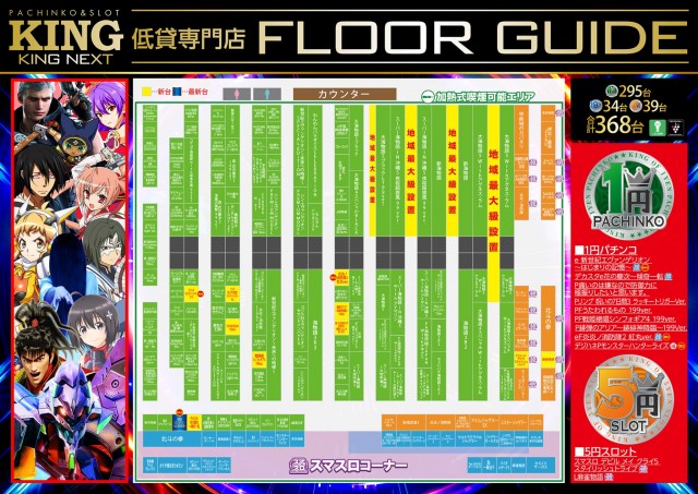 - [1]パチ:295台 [1000円/184枚]スロ:39台 [10.87]スロ:34台