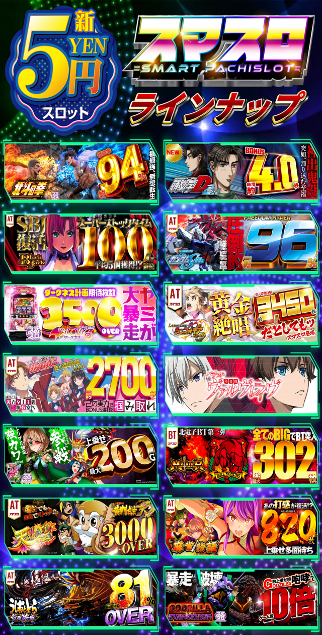 - [1000円/46枚]スロ:128台 [1000円/184枚]スロ:110台