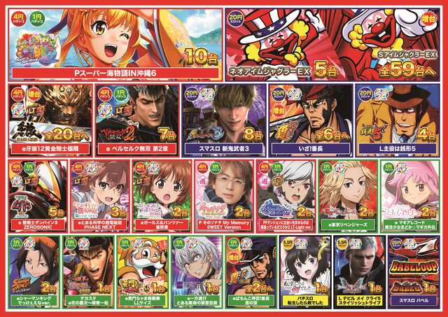 - [4]パチ:348台 [1]パチ:234台 [20]スロ:350台 [1000円/182枚]スロ:62台