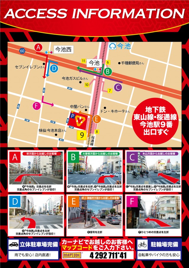 - 地下鉄桜通り線東山線 今池駅9番出口目の前!立体駐車場もございます!