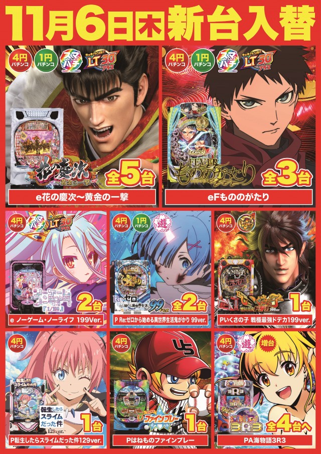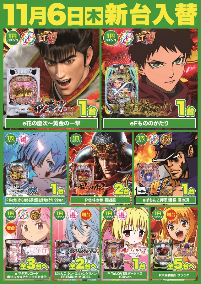 - [4]パチ:160台 [1]パチ:205台 [1000円/46枚]スロ:220台 [1000円/182枚]スロ:52台