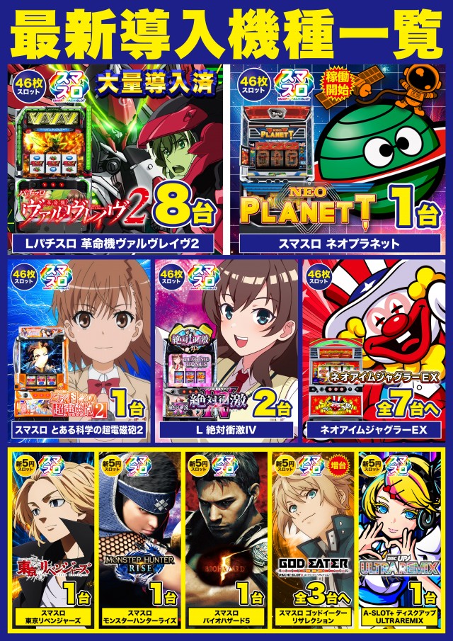 - [4]パチ:160台 [1]パチ:205台 [1000円/46枚]スロ:220台 [1000円/182枚]スロ:52台