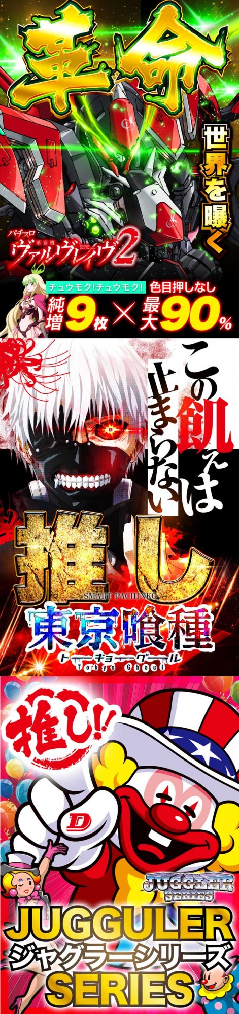 - [4]パチ:263台 [1]パチ:262台 [2.5]スロ:40台 [1000円/182枚]スロ:87台 [1000円/46枚]スロ:346台