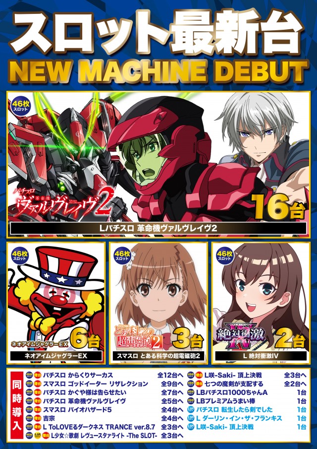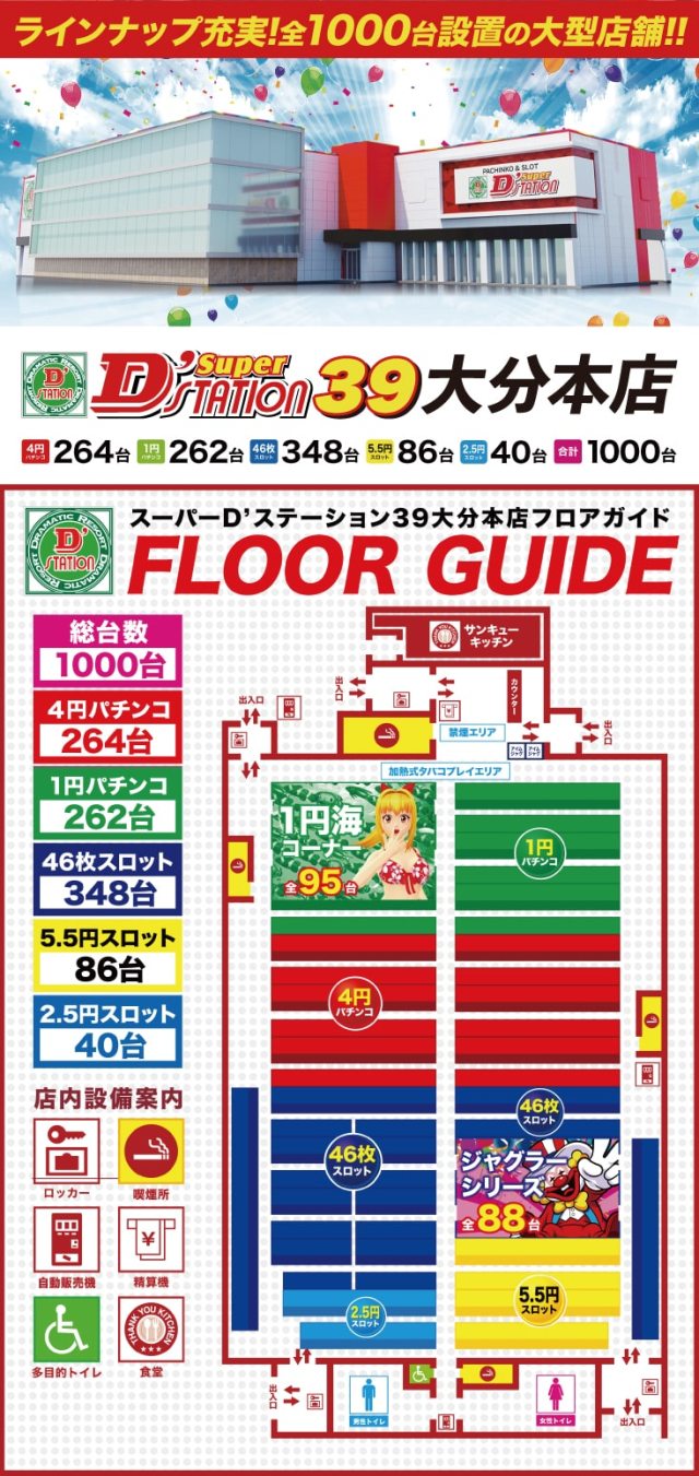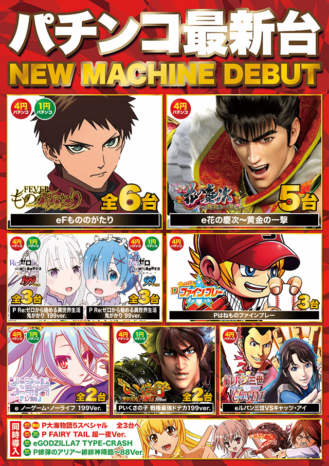 - [4]パチ:262台 [1]パチ:261台 [0.5]パチ:44台 [2.5]スロ:40台 [1000円/182枚]スロ:86台 [1000円/46枚]スロ:302台