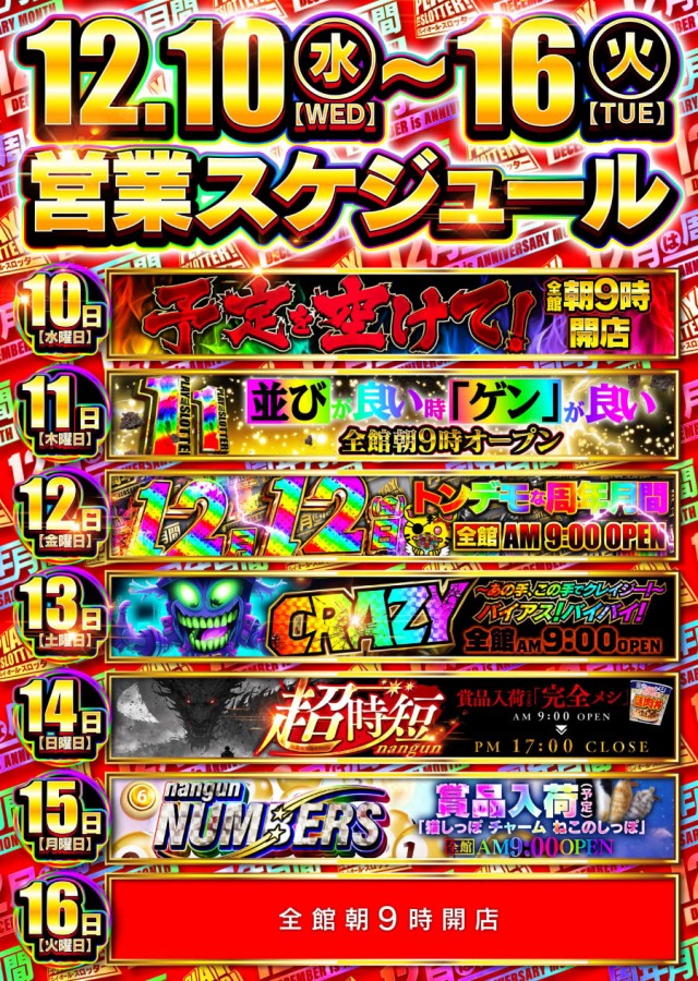 - 無し※店休日があるは事前に告知致します。