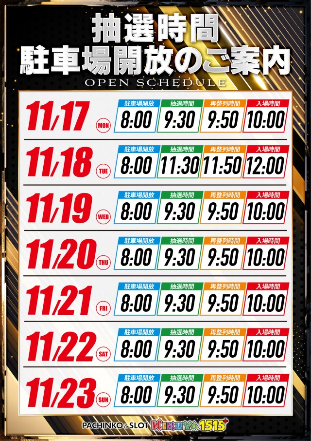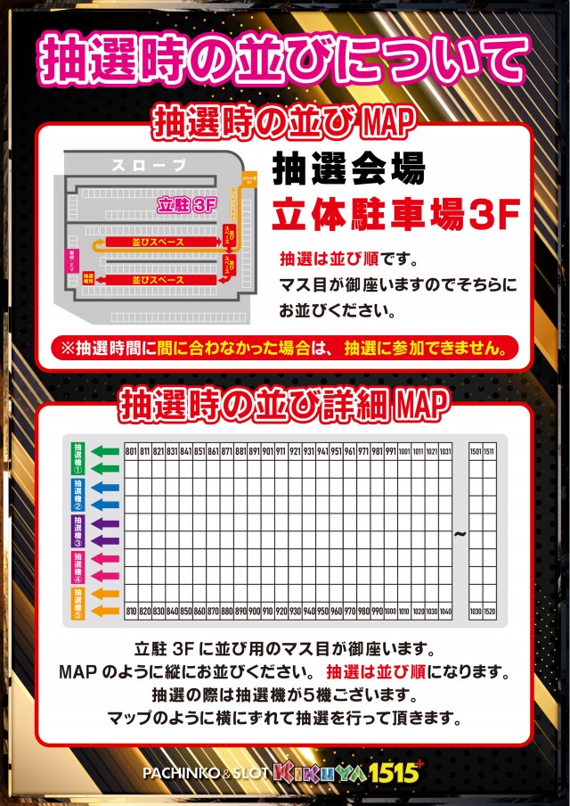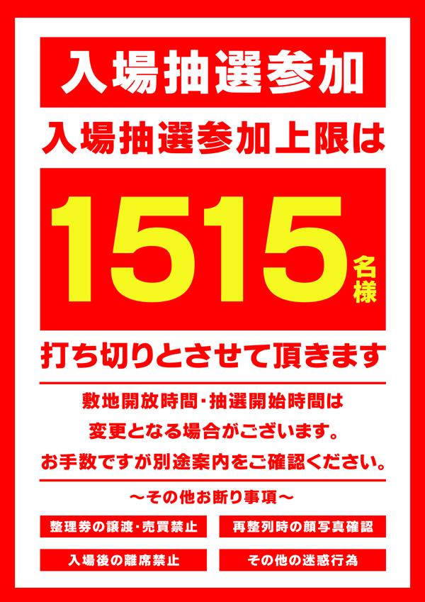 - 遊技台はお一人様1台。確保券以外の物取りは全て無効となります。