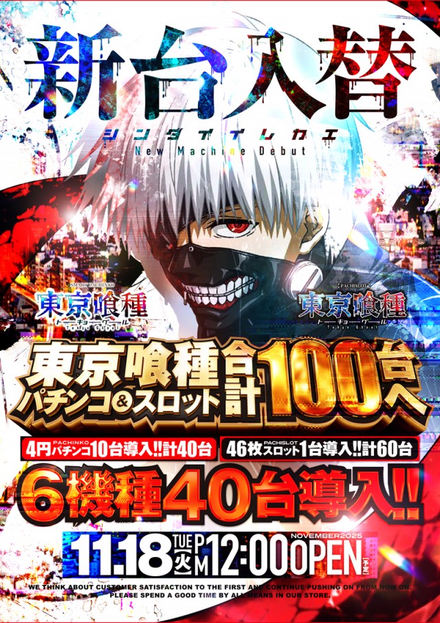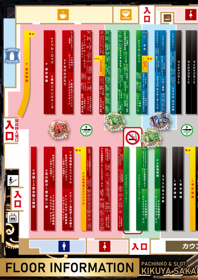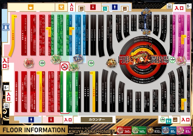 - [4]パチ:360台 [1]パチ:160台 [1000円/46枚]スロ:832台 [1000円/178枚]スロ:80台 [2]スロ:83台