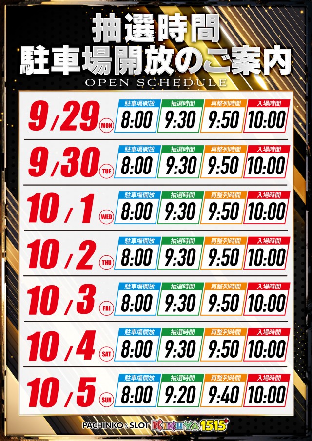 - 遊技台はお一人様1台。確保券以外の物取りは全て無効となります。