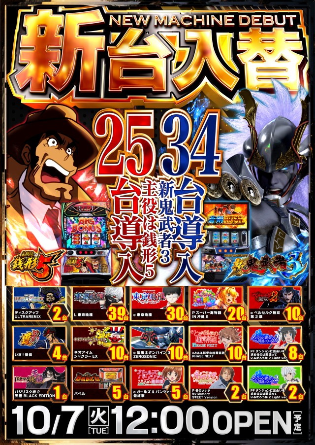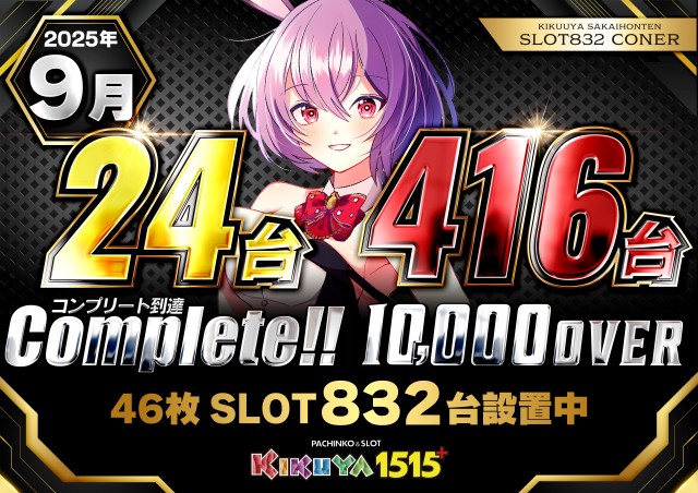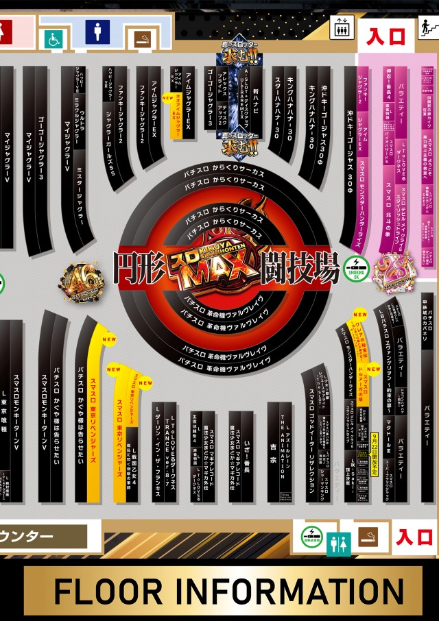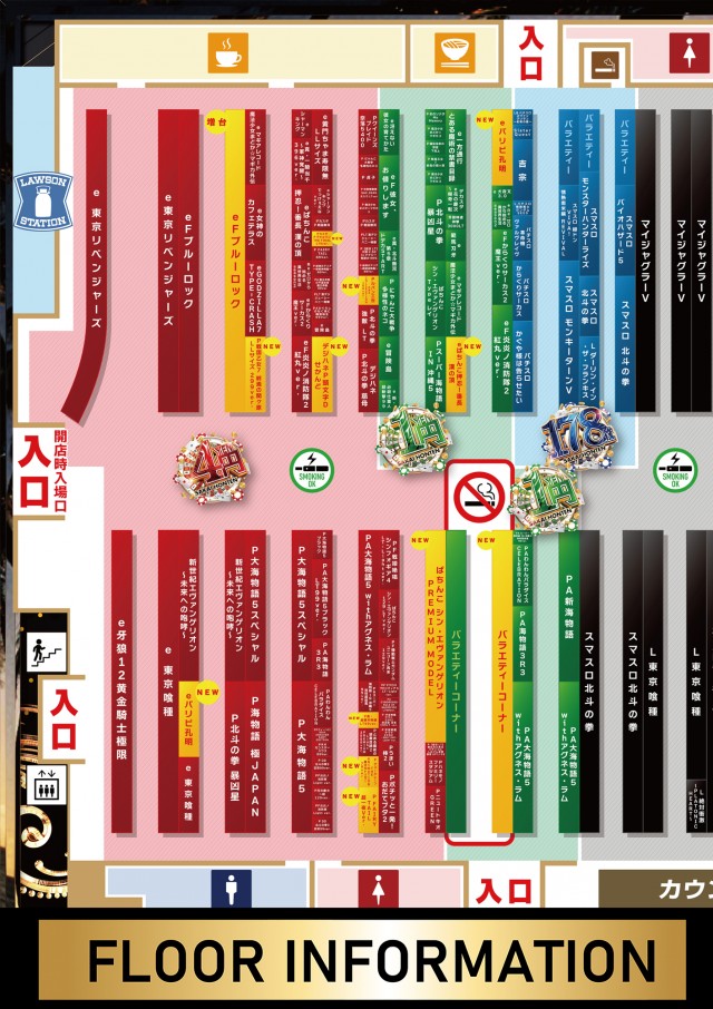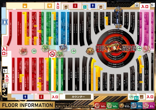 - [4]パチ:360台 [1]パチ:160台 [1000円/46枚]スロ:832台 [1000円/178枚]スロ:80台 [2]スロ:83台