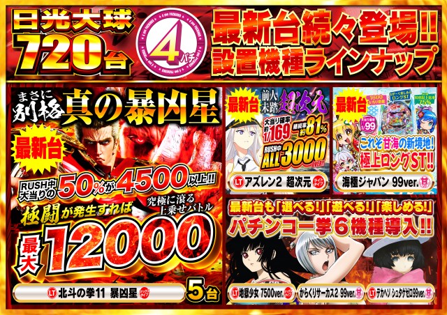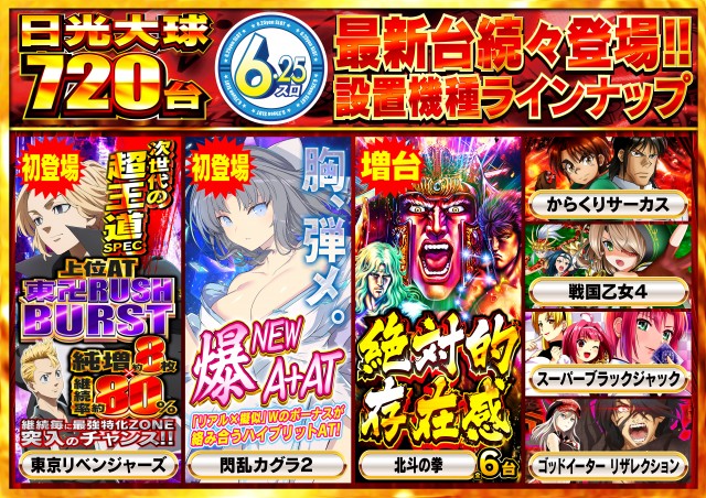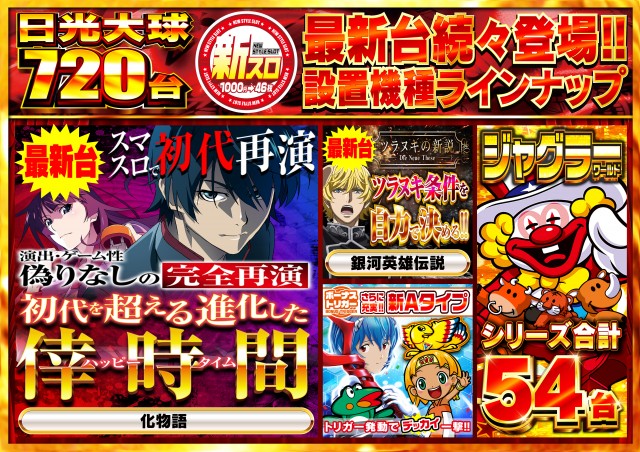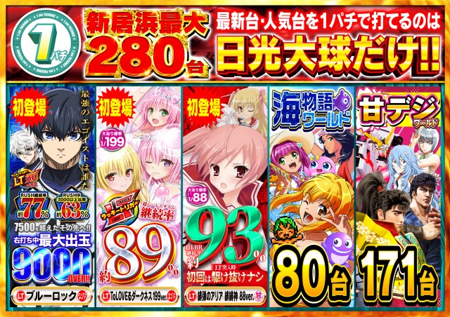 - [4]パチ:200台 [1]パチ:280台 [1000円/46枚]スロ:200台 [6.25]スロ:40台