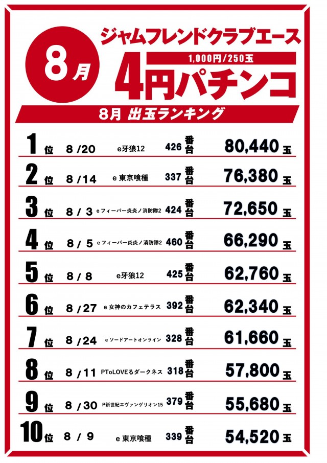 - [1000円/250玉]パチ:200台 [1000円/890玉]パチ:200台 [0.5]パチ:40台 [1000円/178枚]スロ:81台 [1000円/330枚]スロ:64台 [1000円/46枚]スロ:273台