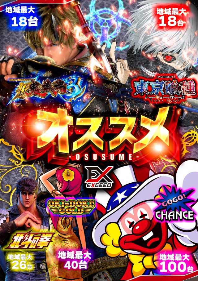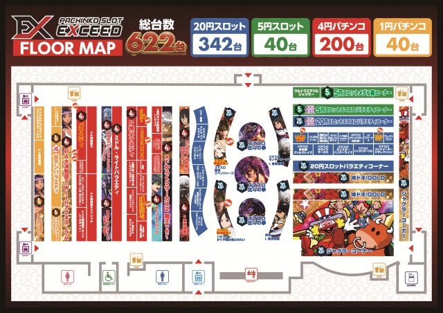 - [1000円/250玉]パチ:200台 [1]パチ:40台 [1000円/46枚]スロ:342台 [1,000円/160枚]スロ:40台