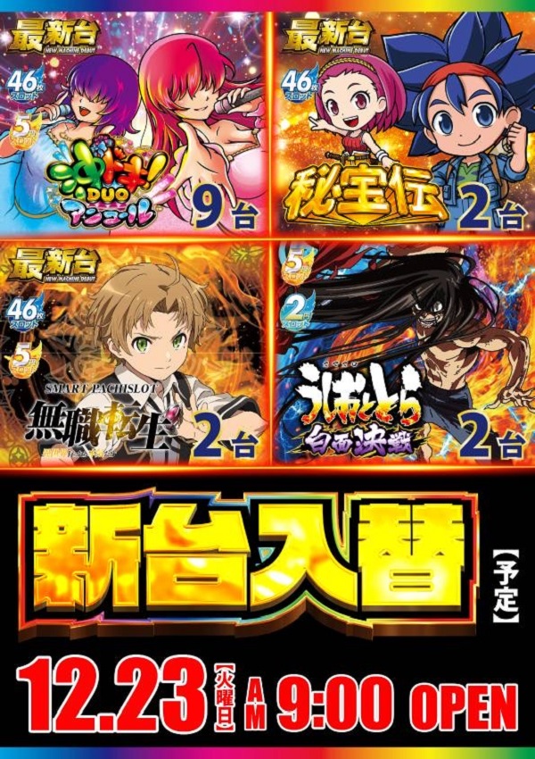- [パチ] 4円:90台 1円:120台 計210台 [スロ] 1000円/46枚:219台 5円:46台 2円:40台 計305台