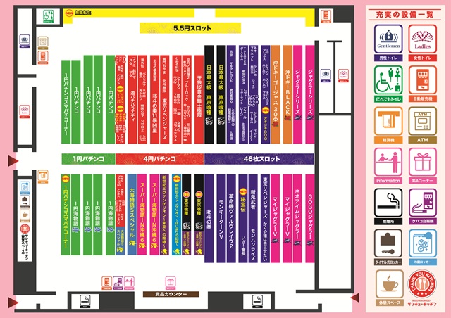 - [4]パチ:304台 [1]パチ:188台 [1000円/46枚]スロ:421台 [1000円/182枚]スロ:47台