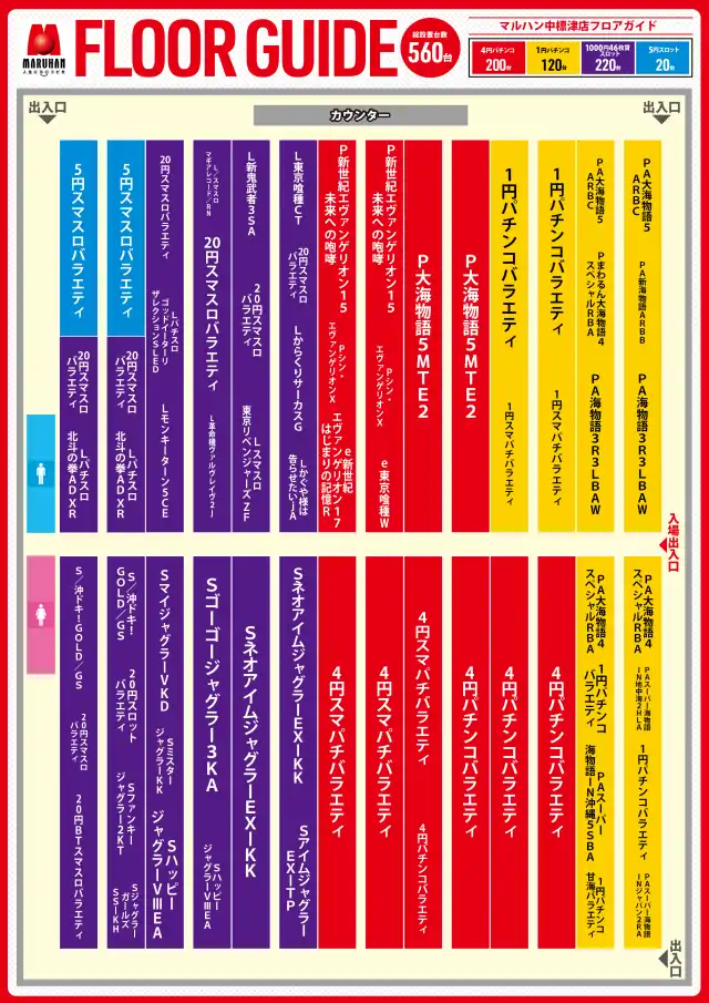 - [4]パチ:200台 [1]パチ:120台 [1000円/46枚]スロ:220台 [5]スロ:20台