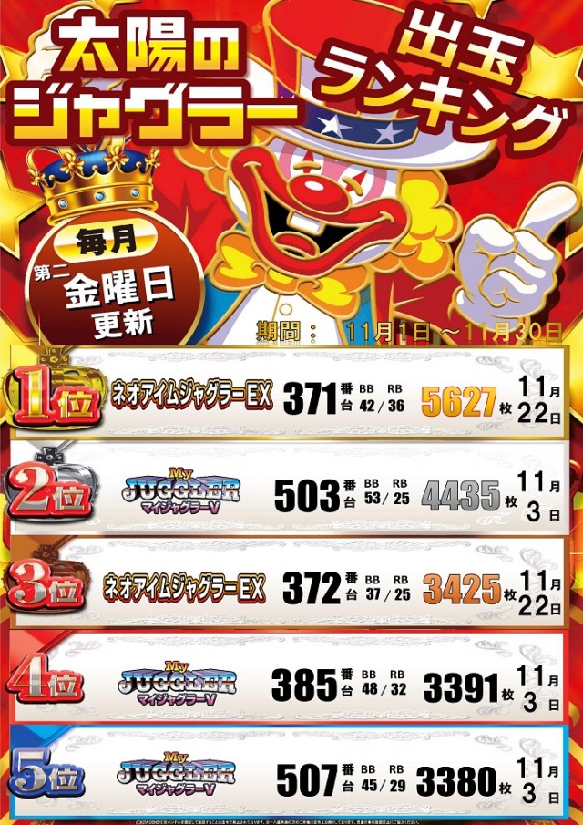 - 1000円/228玉パチンコ:180台、1.25円パチンコ:90台、1,000円/46枚スロット:146台