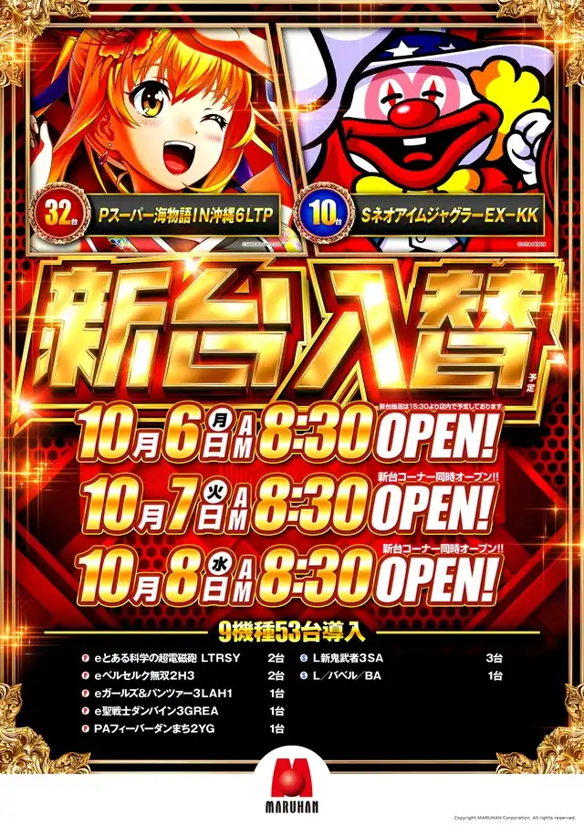 - [4]パチ:184台 [1]パチ:144台 [1000円/46枚]スロ:240台 [1000円/178枚]スロ:40台