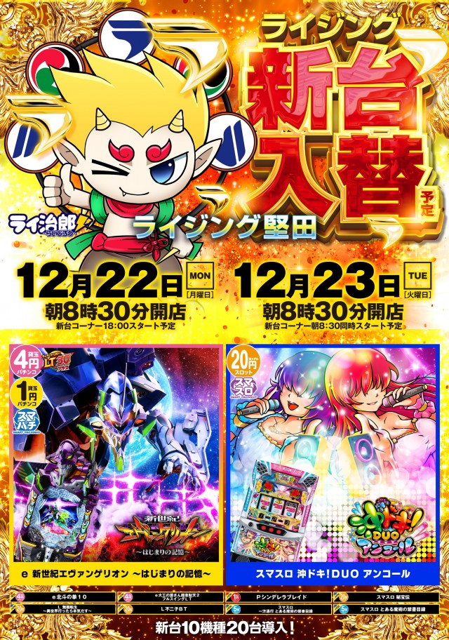 - 8:30 ~ 23:00 (遊技終了 22:45)