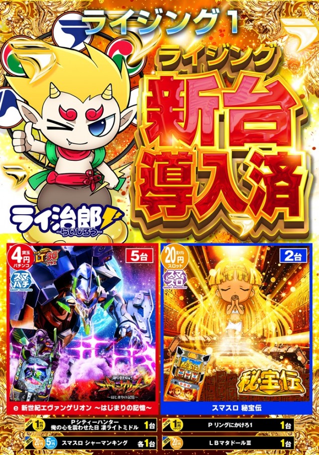 - [1]パチ:136台 [4]パチ:170台 [0.2]パチ:34台 [20]スロ:144台 [5]スロ:72台