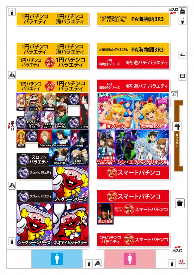 - [4]パチ:200台 [1]パチ:120台 [1000円/46枚]スロ:160台