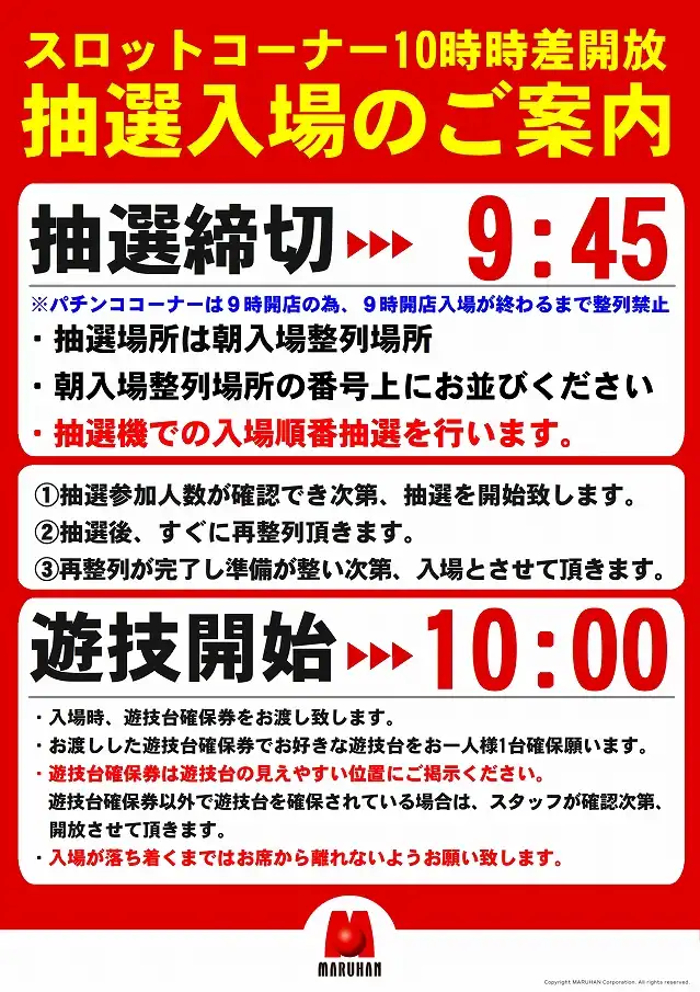 - AM8:40から抽選入場をおこなっております
