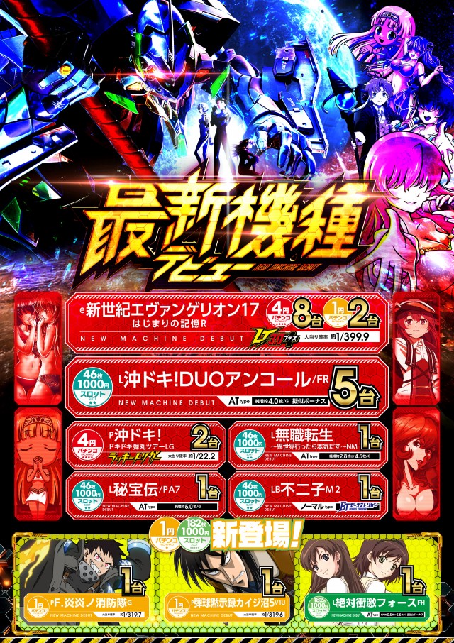 - [4]パチ:252台 [1]パチ:144台 [1000円/46枚]スロ:136台 [1000円/182枚]スロ:34台
