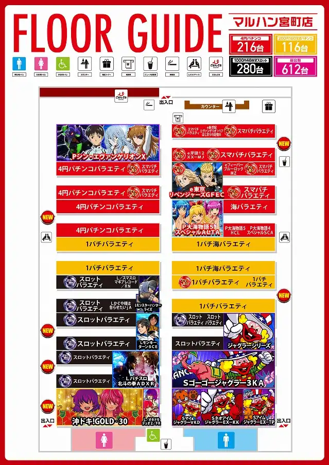 - パチンコ 4円、1円 / パチスロ 46枚貸
