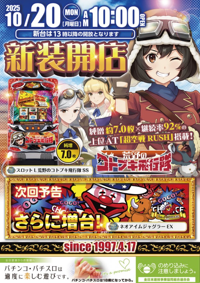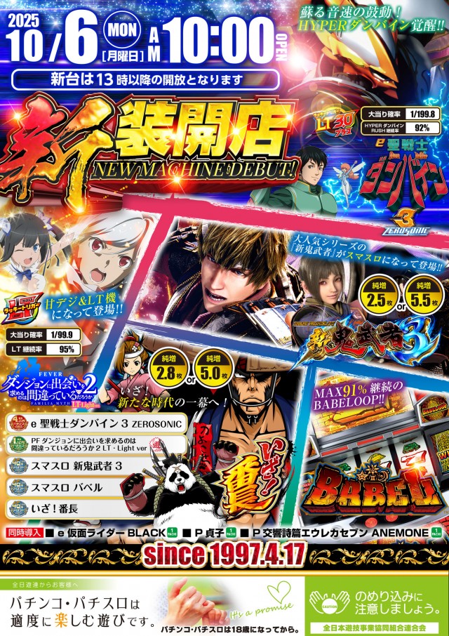 - [4.386]パチ:82台 [1.124]パチ:69台 [0.562]パチ:10台 [1000円/46枚]スロ:147台