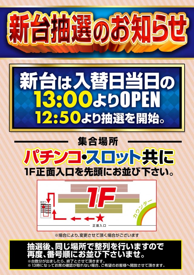 - 08:45 LINE@予約締切 09:00 仮番号決定 09:15 来店意思表明 09:30 整理券番号決定 09:50 整理券番号順に整列