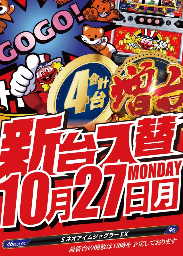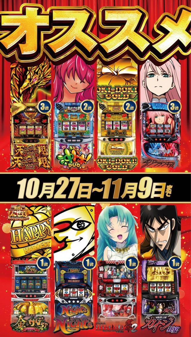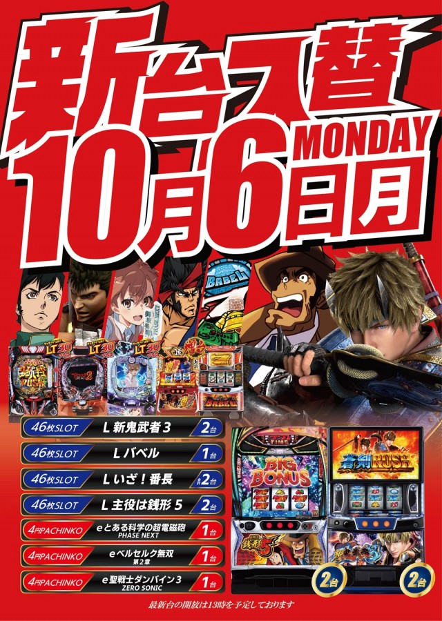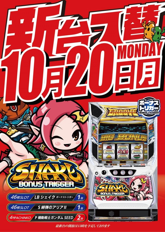 - [4]パチ:90台 [1]パチ:67台 [0.2]パチ:12台 [1000円/46枚]スロ:173台