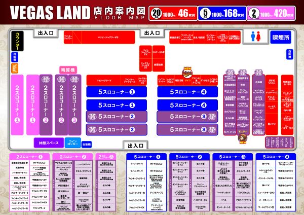 - [1000円/46枚]スロ:84台 [5]スロ:56台 [2]スロ:42台